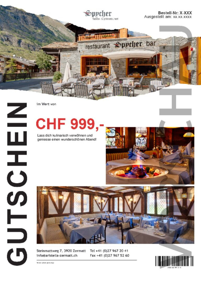 Definieren Sie den Preis selbst und schenken Sie Genuss und Zeit zum Verweilen im Restaurant Spycher.